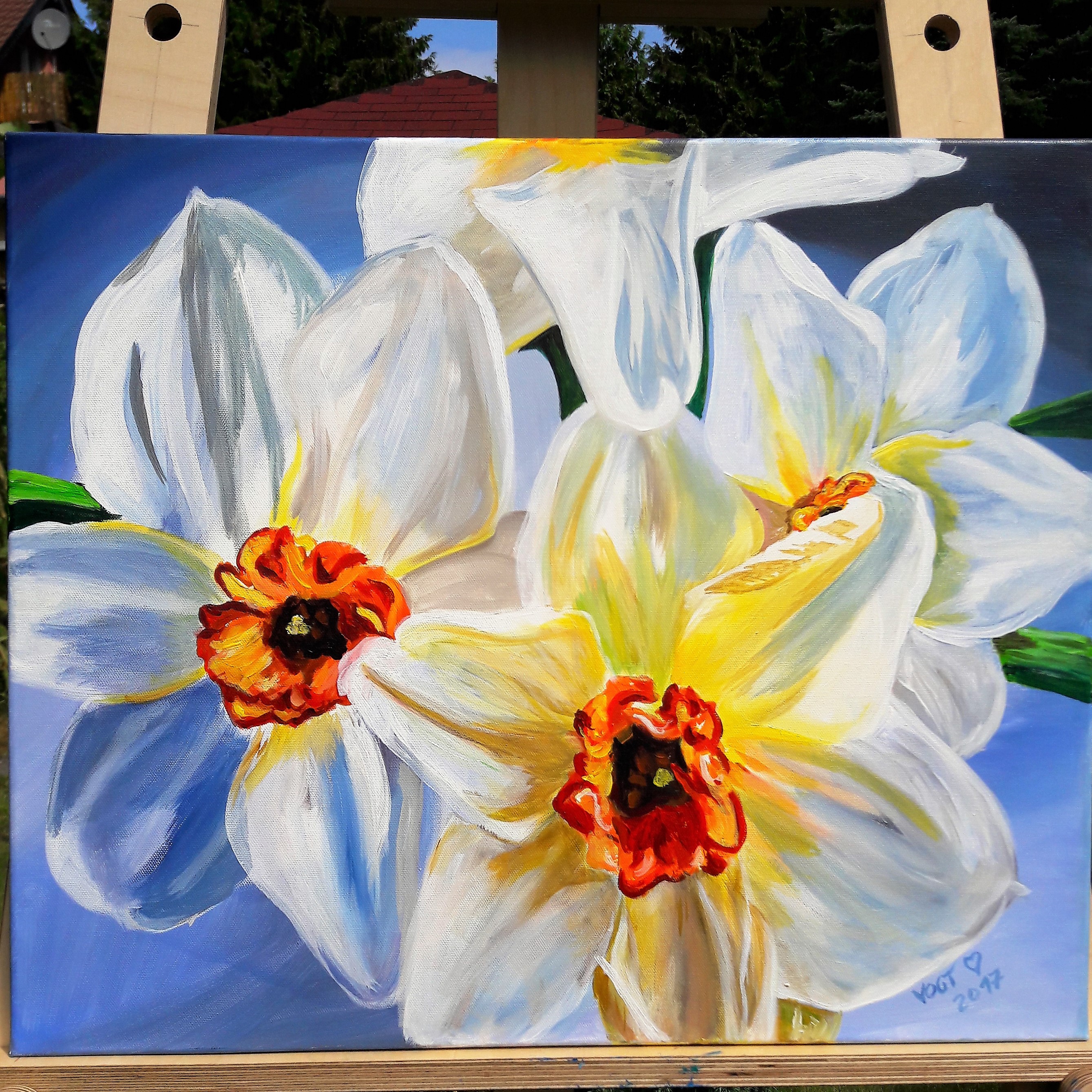 Die Malerin Petra Vogt wurde am 31.12.1962 in Frankfurt am Main geboren. Sie hat eine Ausbildung zur technischen Zeichnerin und einer Weiterbildung zur Maschinenbautechnikerin. Sie malt und zeichnet schon seit über 40 Jahren. Das Talent wurde ihr in die Wiege gelegt. Die Feinarbeit hat sie in vielen Kursen bei verschiedenen Dozenten, z.B. im Frankfurter Städel oder der Offenbacher Schule für Mode, Grafik und Design, verfeinert und verbessert. Gemalt wird in Öl, Acryl, Ei-Tempera oder Pastellkreide. Jede Farbe hat ihren eigenen Reiz und lässt sich unterschiedlich verarbeiten. Zu den gewählten Motiven gehören Landschaften, Stillleben und Blumen. Ihre Leidenschaft ist allerdings schon immer das malen und zeichnen von Mensch und Tier.